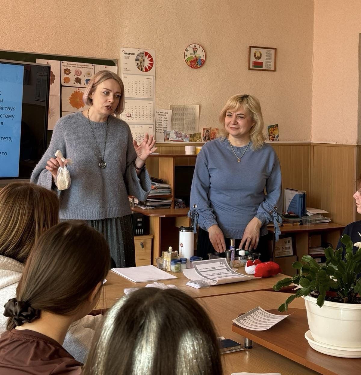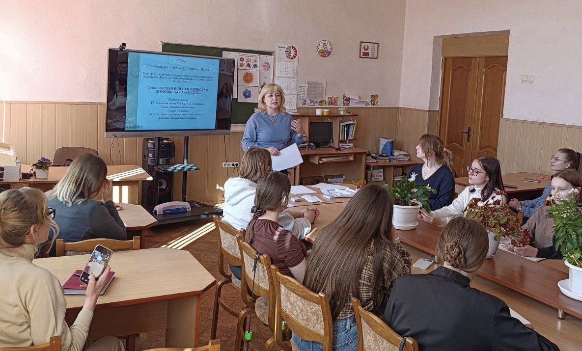 23.03.2026В рамках реализации мероприятий районной стартап-лаборатории для молодых специалистов «Начинать легко!» педагоги-психологи Светлана Михайловна Швед (ГУО «Базовая школа № 9 имениА.С.Пушкина г. Полоцка») и Наталья Валентиновна Зюзелева (УО «Полоцкая государственная гимназия № 2») провели для начинающих педагогов и воспитателей дошкольных учреждений Полоцкого района психологический тренинг «Первая психологическая помощь. Забота о себе».